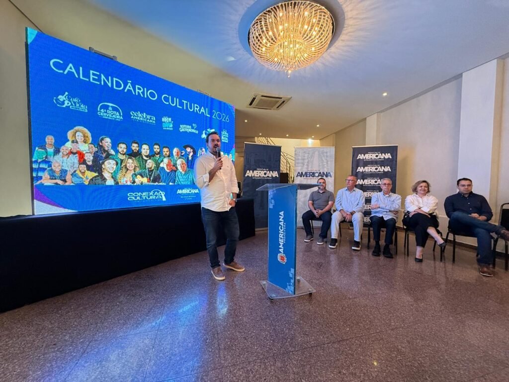 O prefeito Chico Sardelli anunciou nesta segunda-feira (2) o Calendário Cultural 2026 de Americana, durante cerimônia no Teatro Municipal Lulu Benencase. A programação prevê oito grandes eventos e nomes consagrados da música nacional.