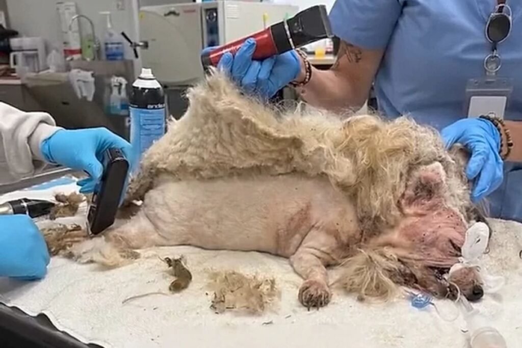 Uma cachorra resgatada em Kansas City, nos Estados Unidos, chamou a atenção nas redes sociais após ser encontrada com quase 1 kg de pelos emaranhados. Segundo o abrigo responsável, foram retirados cerca de 770 gramas de pelos durante a tosa, que durou aproximadamente duas horas.