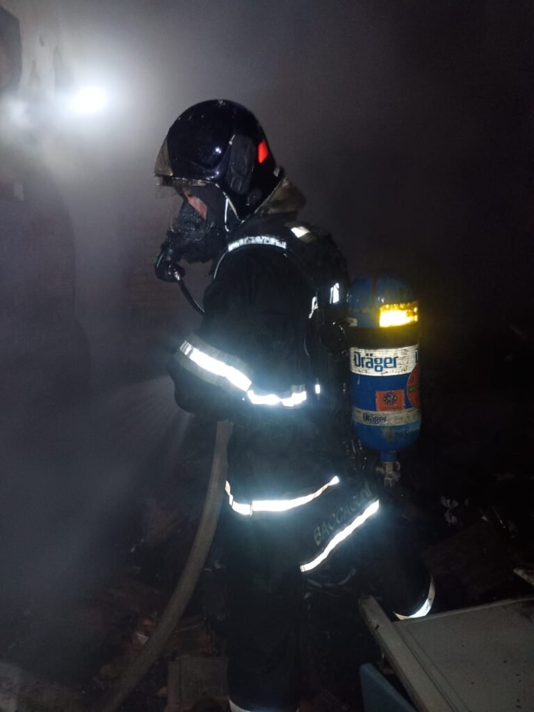 Após o trabalho de extinção do incêndio, as equipes realizaram uma vistoria, já que o imóvel apresentava colapso estrutural. Durante a inspeção, com apoio do policiamento de área, da Defesa Civil e da perícia, foi identificado um corpo sob os escombros da residência.